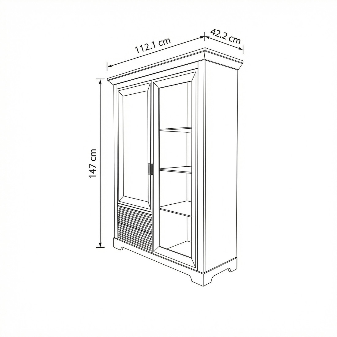 Dimensiunile comodei de bar sunt 112 cm latime, 42.2 cm adancime si 147 cm inaltime, ofera spatiu suficient pentru depozitarea diferitelor articole si obiecte decorative. Pe parte dreapta are trei polite din sticla acoperite cu o usa din sticla, iar pe partea stanga cele doua sertare cu sistemul de deschidere/inchidere tip Push To Open sunt ideale pentru organizarea si accesul rapid catre produse de dimensiuni reduse. Cele trei rafturi acoperite cu usa plina sunt potrivite pentru pastrarea mereu la indemana a obiectelor necesare in spatiul unde doriti sa o amplasati.