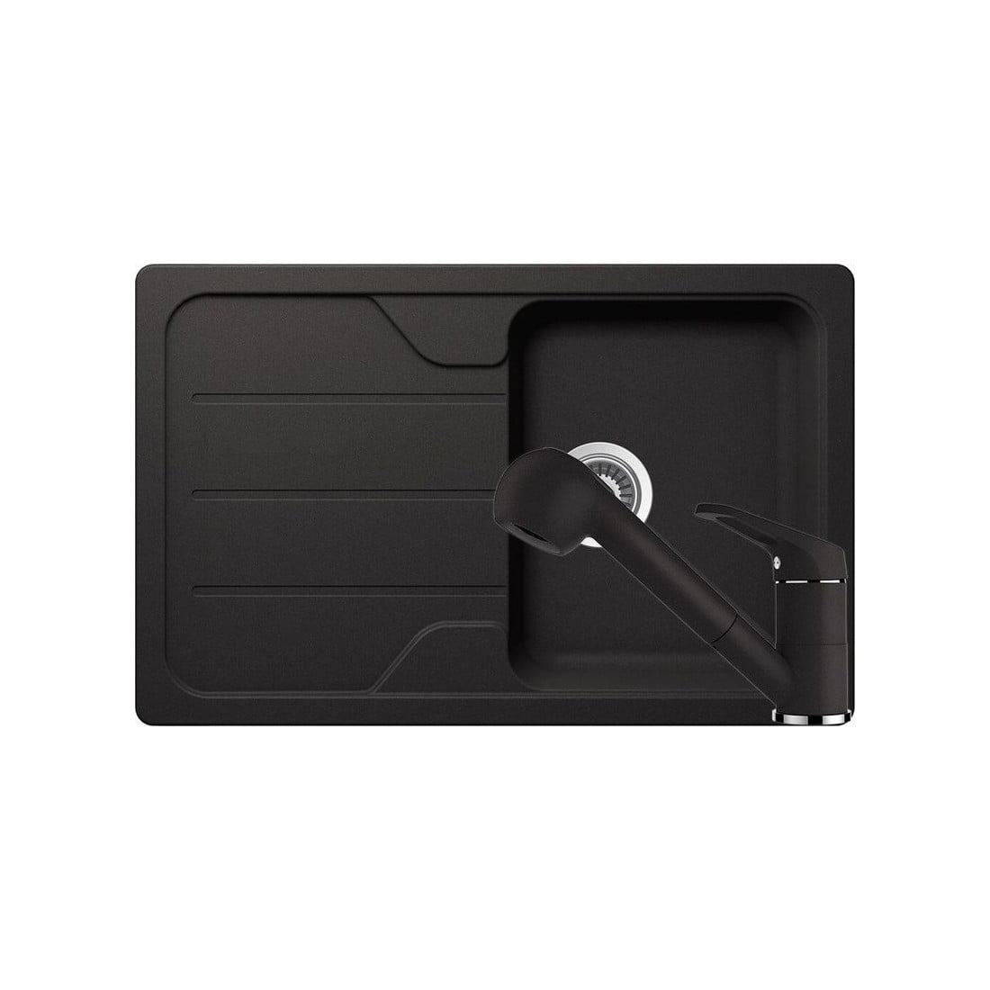 Set chiuveta bucatarie Schock Formhaus D-100S si baterie bucatarie Schock Cosmo Cristalite Nero cu dus extractibil 78 x 50 cm