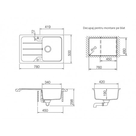 Chiuveta Granit Schock Formhaus D-100S Asphalt Cristalite 78 x 50 cm cu montare pe blat si o cuva cu picurator, este destinata adaptarii corpurilor de chiuveta de minim 45 cm. Chiuveta este reversibila, gaura pentru baterie este prefrezata si se face prin lovire, potrivit instructiunilor de montaj incluse in pachet sau cu ajutorul carotei diamantata disponibila contra cost. Chiuveta este realizata din material CRISTALITE+ deosebit de rezistent. Suprafata acestuit tip de material revolutionar este de aproape trei ori mai dura decat roca de granit, ceea ce inseamna si rezistenta sporita la socuri. In plus, suprafata CRISTALITE®+ include tehnologia SCHOCK proHygienic21, care asigura protectie pentru intreaga dvs. familie atunci cand pregatiti alimentele, dar si facilitate la intretinere si curatare. Acest model este disponibil intr-o paleta diversa de culori, pentru ca personalitatea dvs. sa se oglindeasca in tot ceea ce va inconjoara si pentru ca bucataria sa devina acea oaza de liniste in care toate problemele dispar, ramanand doar placerea pura. Pachetul include garnitura de scurgere, ventil cos, sifon si cleme.