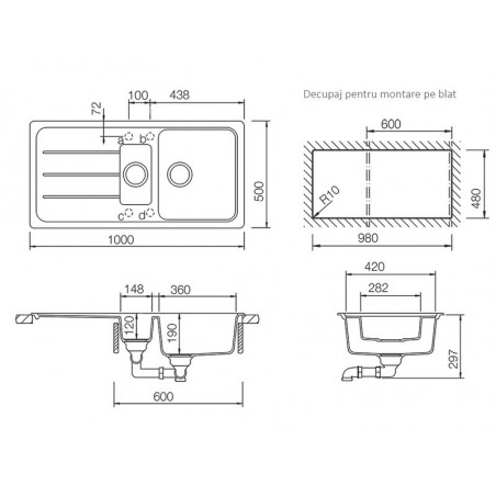 Dimensiune chiuveta: 100 x 50 cm