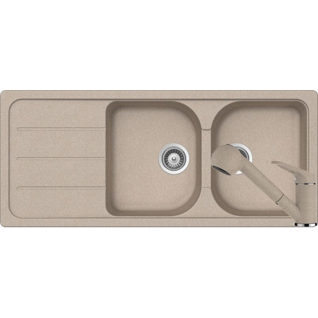 Set chiuveta bucatarie Schock Formhaus D-200 si baterie bucatarie Schock Cosmo Cristalite Sabbia cu dus extractibil 116 x 50 cm