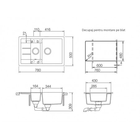 Inclus in pachet de livrare: Garnitura de scurgere, ventil cos, sifon si cleme