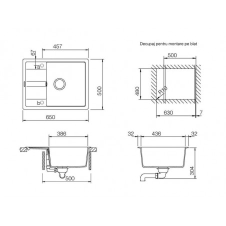 Chiuveta Granit Schock Ronda D-100L Asphalt Cristalite: 65 x 50 cm cu montare pe blat si o cuva cu picurator este destinata adaptarii corpurilor de chiuveta de minim 50 cm. Chiuveta este reversibila, gaura pentru baterie este prefrezata si se face prin lovire, potrivit instructiunilor de montaj incluse in pachet sau cu ajutorul carotei diamantata disponibila contra cost. Chiuveta este realizata din material CRISTALITE® deosebit de rezistent - suprafata acestuit tip de material revolutionar este de aproape trei ori mai dura decat roca de granit, ceea ce inseamna si rezistenta sporita la socuri. In plus, suprafata CRISTALITE® include tehnologia SCHOCK proHygienic21, care asigura protectie pentru intreaga dvs. familie, atunci cand pregatiti alimentele, dar si facilitate la intretinere si curatare. Dimensiunile reduse si cuva mai mult decat geAsphaltasa sunt caracteristicile ce promoveaza acest model de chiuveta, ideal pentru bucatariile mici tipice garsonierelor sau apartamentelor din oras. In plus, pentru modernitate si eleganta suplimentare, chiuveta ofera posibilitatea de adaptare a unui tocator din sticla sau din bambus. Pachetul include garnitura de scurgere, ventil cos, sifon si cleme.