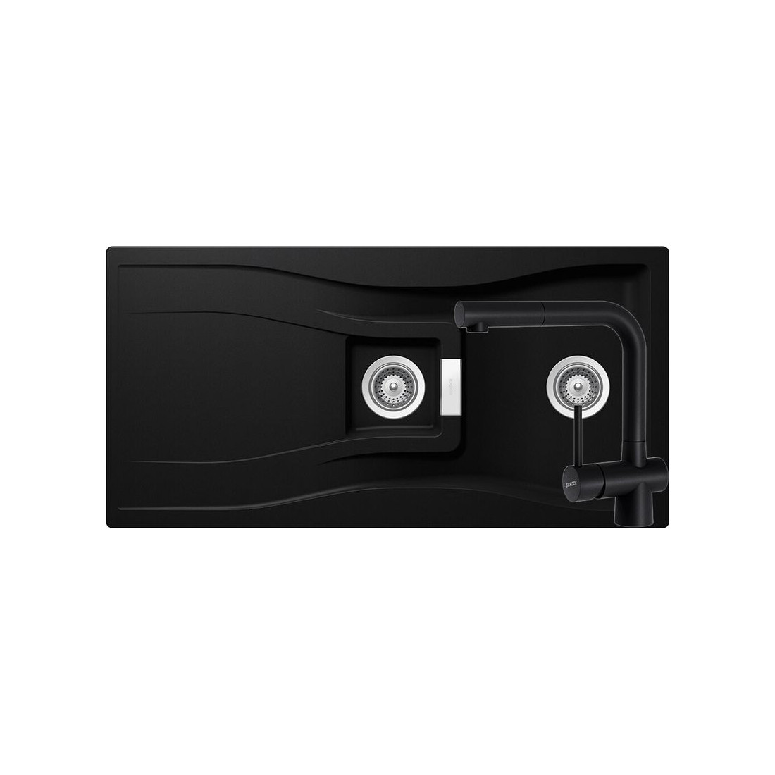 Set chiuveta bucatarie Schock Waterfall D-150 si baterie bucatarie Schock Laios Cristadur Puro cu dus extractibil 100 x 50 cm