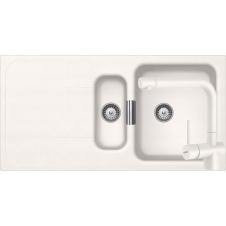 Chiuveta Granit Schock Wembley D-150 Polaris Cristadur 100 x 51 cm cu 1 cuva mare, 1 cuva mica si picurator, adancime cuva 20 / 12 cm potrivit pentru corpuri de bucatarie de minimum 60 cm. Stanley Kubrick, renumit regizor american, nominalizat in repetate randuri la premiul Oscar, dar si castigator al acestuia la sectiunea regie, spunea despre inovatie: “A inova inseamna sa avansezi fara a abandona trecutul.” Acest dicton se potriveste perfect echipei de dezvoltare a conceptelor de design Schock, care prin eforturi comune si capacitate remarcabila de adaptare la solicitarile contemporane a creat modelul Wembley D-150. Acesta se remarca prin contururi fluide si suprafete CRISTADUR® catifelate ce va vor inspira toate simturile. Un alt element de design complet inovator care confera eleganta sporita acestui model este preaplinul care se conformeaza tendintei curbate a cuvelor si care este confectionat din inox de cea mai buna calitate. Cele doua cuve se completeaza prin functionalitate si va ofera eficienta deosebita la realizarea sarcinilor in jurul chiuvetei. Dimensiunile generoase ale cuvei principale va asigura liniste sufleteasca, chiar si atunci cand solicitarile sunt mari - in cazul unei petreceri cu numerosi invitati, de exemplu. In acelasi timp, cuva secundara, de adancime si dimensiuni mai reduse va permite spalarea si scurgerea legumelor si fructelor, prin posibilitatea de adaptare optionala a setului de recipiente din plastic. Acesta este perfect adaptat dimensiunilor si formei cuvei, pentru unitate la nivel vizual. Iar pentru ca siguranta familiei dvs. este obligatia noastra nr.1, printre atuurile acestei chiuvete se numara si sistemul ProHygienic care pur si simplu nu permite bacteriilor daunatoare sa se depuna pe suprafata chiuvetei. Pachetul include garnitura de scurgere, ventil cos, sifon, cleme si carota diamantata. Chiuveta permite montare reversibila. Gaura pentru montarea bateriei este prefrezata, iar instalatorul o poate adapta conform solicitarilor individuale. Atentie: daca vreti sa montati un Tocator de Resturi Alimentare la acest model este necesar accesoriul Adaptor Schock WG-100 Perfect Drain la Tocator Resturi Alimentare