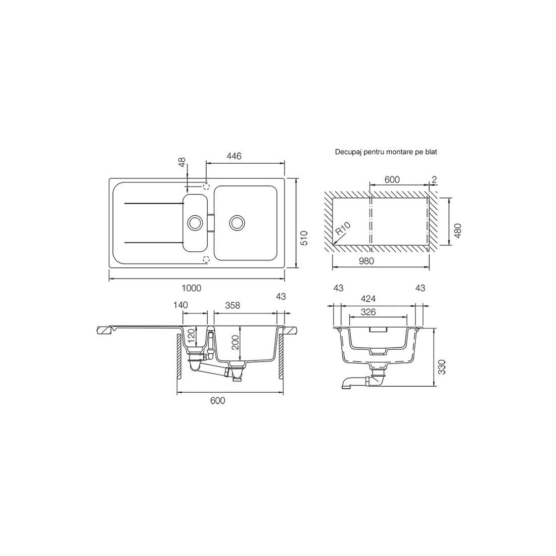 Dimensiune decupaj: 98 x 48 cm