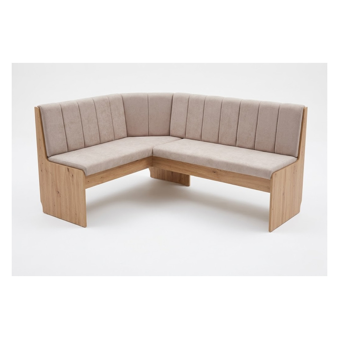 Indiferent dacă ai o bucătărie generoasă sau un spațiu de tip open-space, acest colțar este proiectat să maximizeze confortul fără a aglomera încăperea. Liniile verticale ale spătarului tapițat adaugă o notă de textură și profunzime, în timp ce nuanța caldă a lemnului aduce un aer natural și primitor.