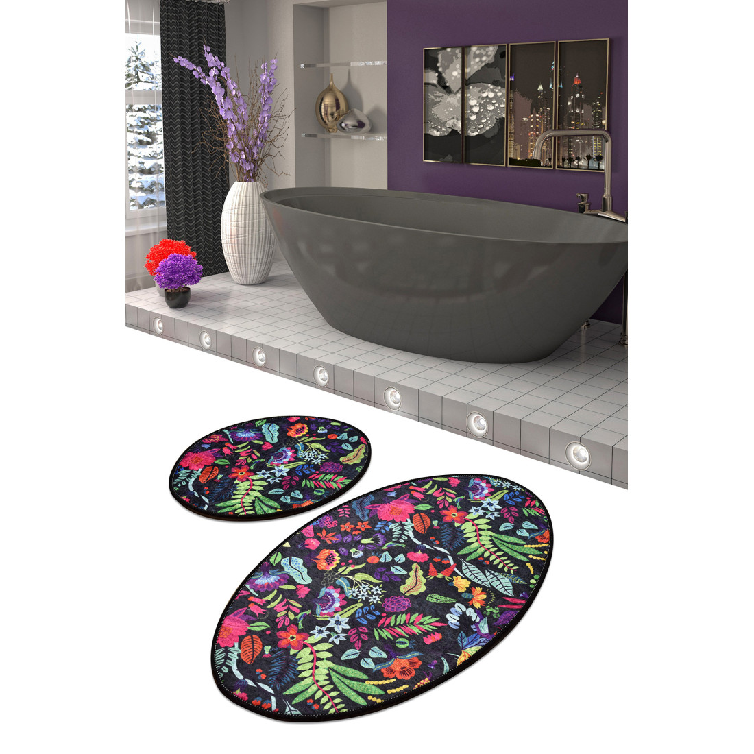Set Covor Baie 2 Pictura Black Oval