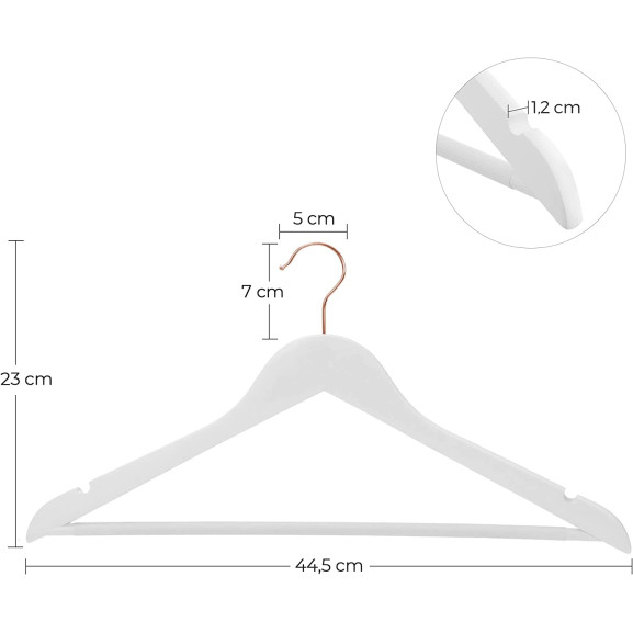 Fiecare dintre aceste umerase din lemn are un cârlig rotativ la 360° de înaltă calitate, cu acoperire metalică, astfel încât să vă puteți întoarce cu ușurință hainele fără a fi nevoie să le scoateți.
