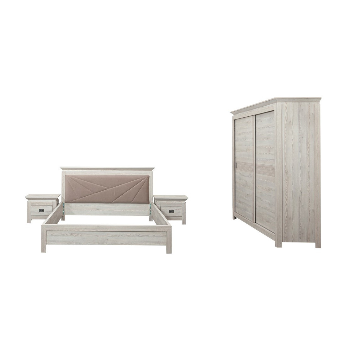 Patul oferă confortul necesar pentru un somn odihnitor, în timp ce dulapul și noptierele asigură spațiu generos pentru depozitare, contribuind la menținerea ordinii în dormitorul tău. Fiecare element din acest set este conceput pentru a satisface nevoile tale zilnice, fără a compromite aspectul estetic.