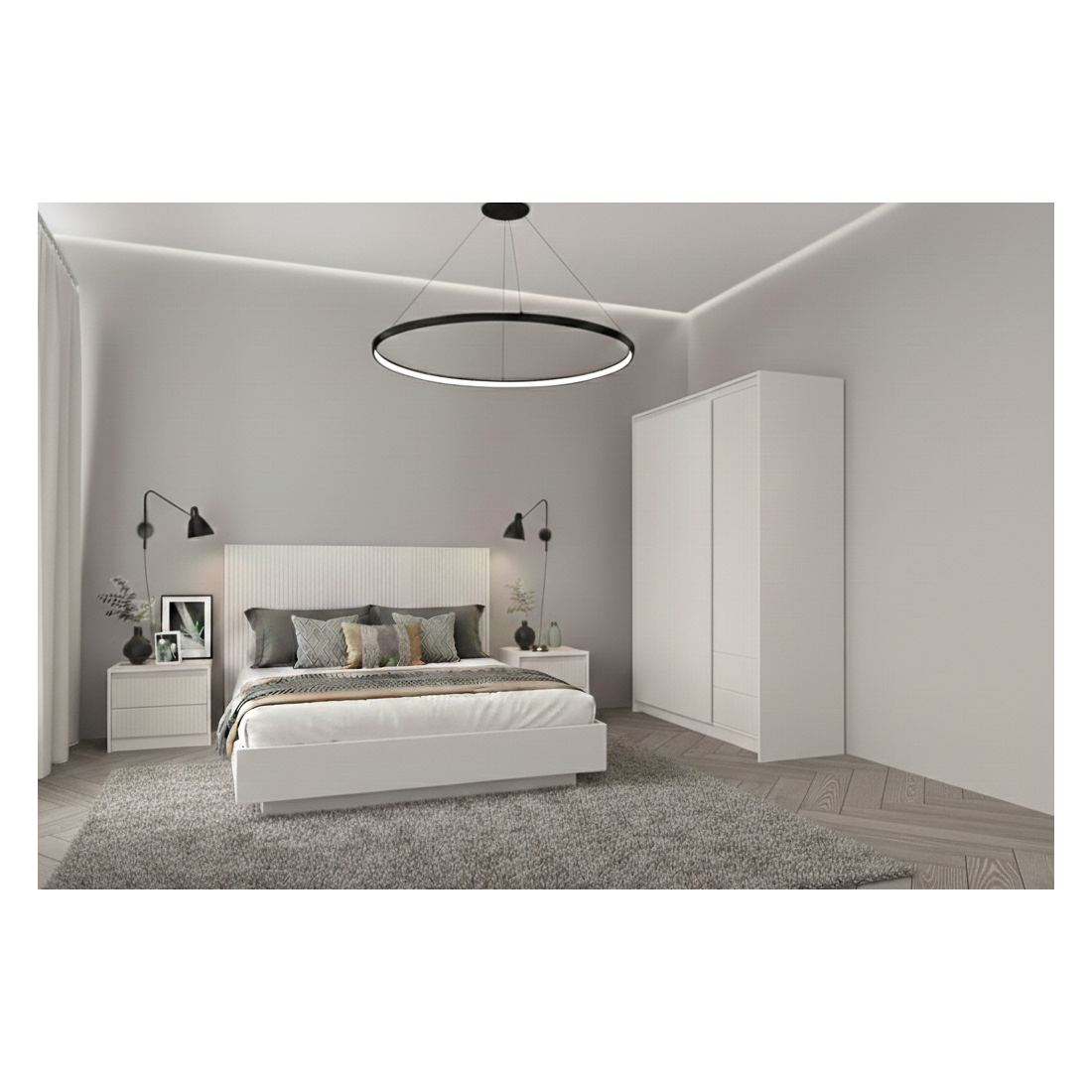 Două Noptiere: Completează simetria patului, oferind sertare practice și finisaje asortate.