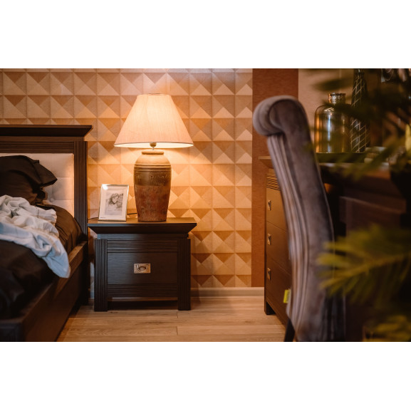 Patul oferă un refugiu confortabil pentru odihnă și relaxare, în timp ce dulapul și noptierele asigură spațiu generos pentru depozitare și organizare. Fiecare piesă este proiectată cu grijă pentru a îmbina perfect estetica cu funcționalitatea, transformând dormitorul tău într-un sanctuar de confort și stil.