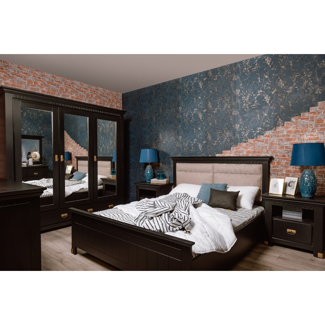 Set Dormitor Saint Tropez, Pat Cu Dimensiune Saltea 160 X 200, Dulap De 180 Cm, 2 Noptiere, Vopsit Negru