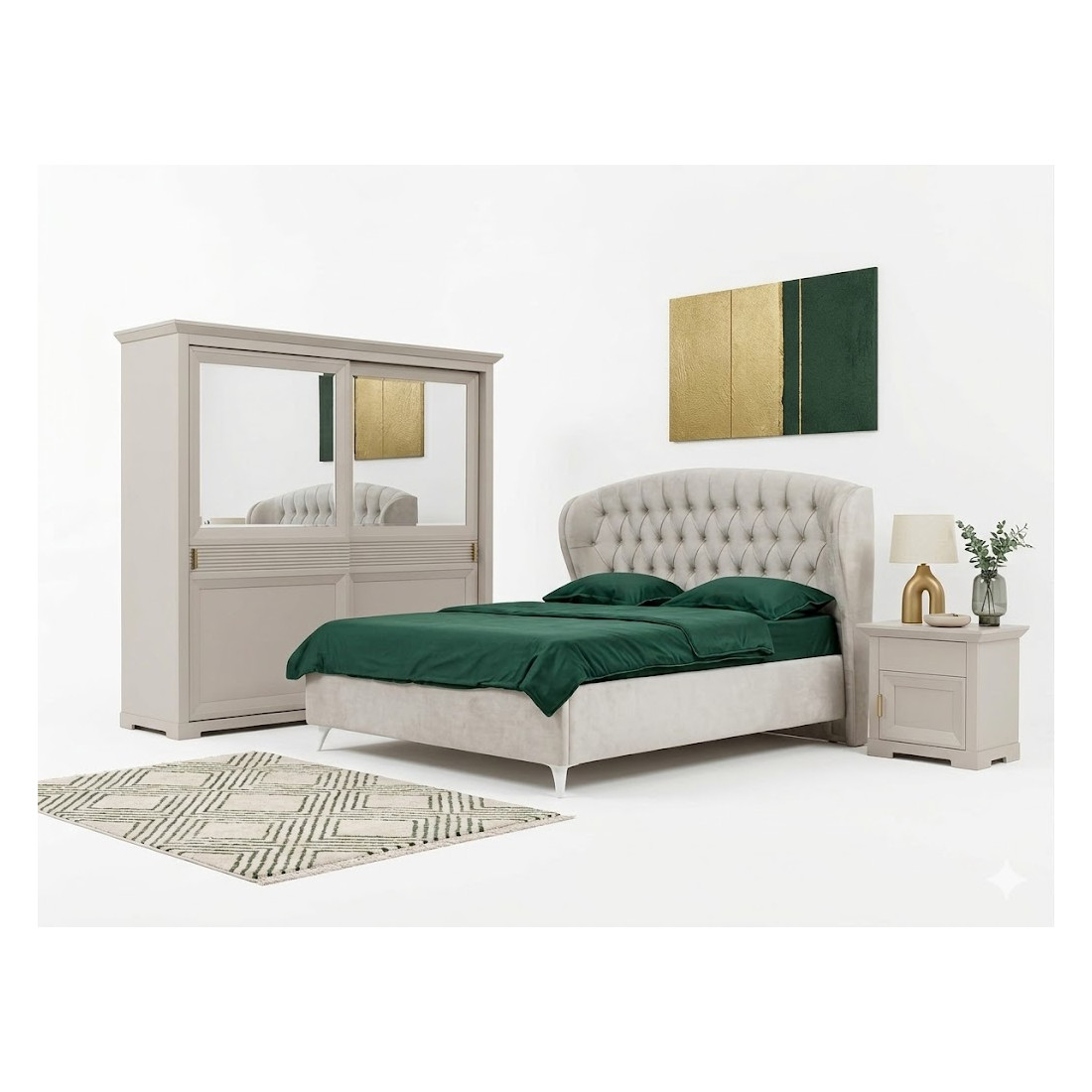 Set Dormitor Verona Kashmir Cu Pat Tapitat, Dimensiune saltea 160 X 200 Cm, 2 Noptiere Si Dulap