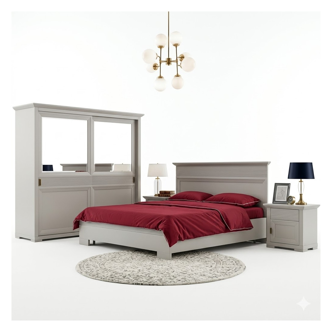 Set Dormitor Verona Kashmir, Pat Cu Dimensiune saltea 180 X 200 Cm, 2 Noptiere Si Dulap