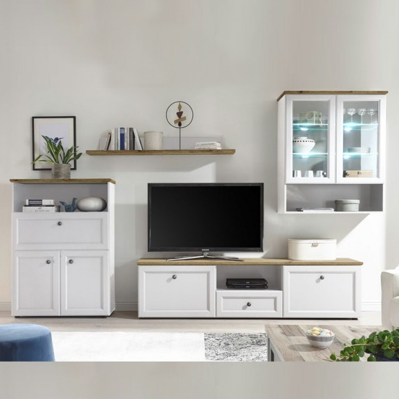 Adaugă un strop de rafinament și funcționalitate în locuința ta cu setul de mobilier Living Toskana. Realizat cu atenție la detalii și într-o combinație de culori deosebite - Alb și Stejar Antic, acest set va aduce o notă de prospetime și caldura în camera ta de zi.