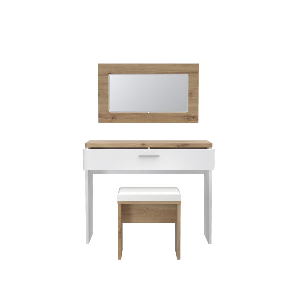Set Masa Toaleta Olinda, Alb Si Stejar Artisan Si Alb Lucios, 100.5 Cm