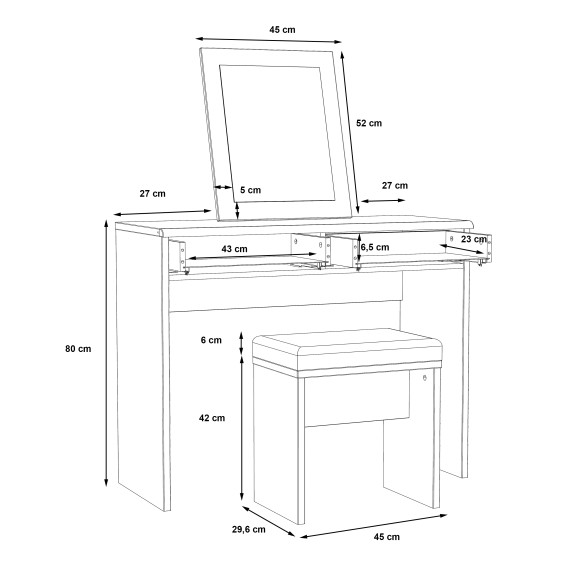 Devino propriul stilist şi creează-ţi salonul de înfrumuseţare. Cu masa de Toaletă Delice vei avea totul la îndemână, la tine acasă. Compartimentul cu sertare îţi va servi ca un loc de depozitare suplimentar.