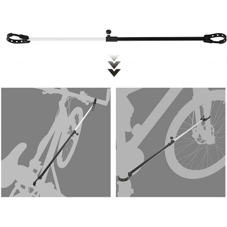 Suportul profesional pentru biciclete are o structura metalica ce ii ofera rezistenta si durabilitate in timp.Tija reglabila este menita sa prinda ghidonul cu stabilizarea rotii din fata.Suportul contine suport pentru scule.Acesta permite rotirea la 360 de grade cu ajutorul butoanelor rosii pentru executare de reparatii mai complicate,cum ar fi reglarea franelor.