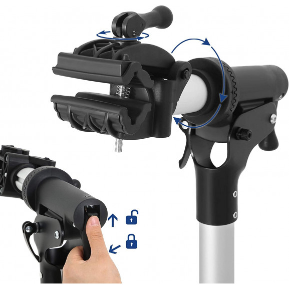 Suportul profesional pentru biciclete are o structura metalica ce ii ofera rezistenta si durabilitate in timp.Tija reglabila este menita sa prinda ghidonul cu stabilizarea rotii din fata.Suportul contine suport pentru scule.Acesta permite rotirea  la 360 de grade cu ajutorul butoanelor negre pentru executare de reparatii mai complicate,cum ar fi reglarea franelor.
