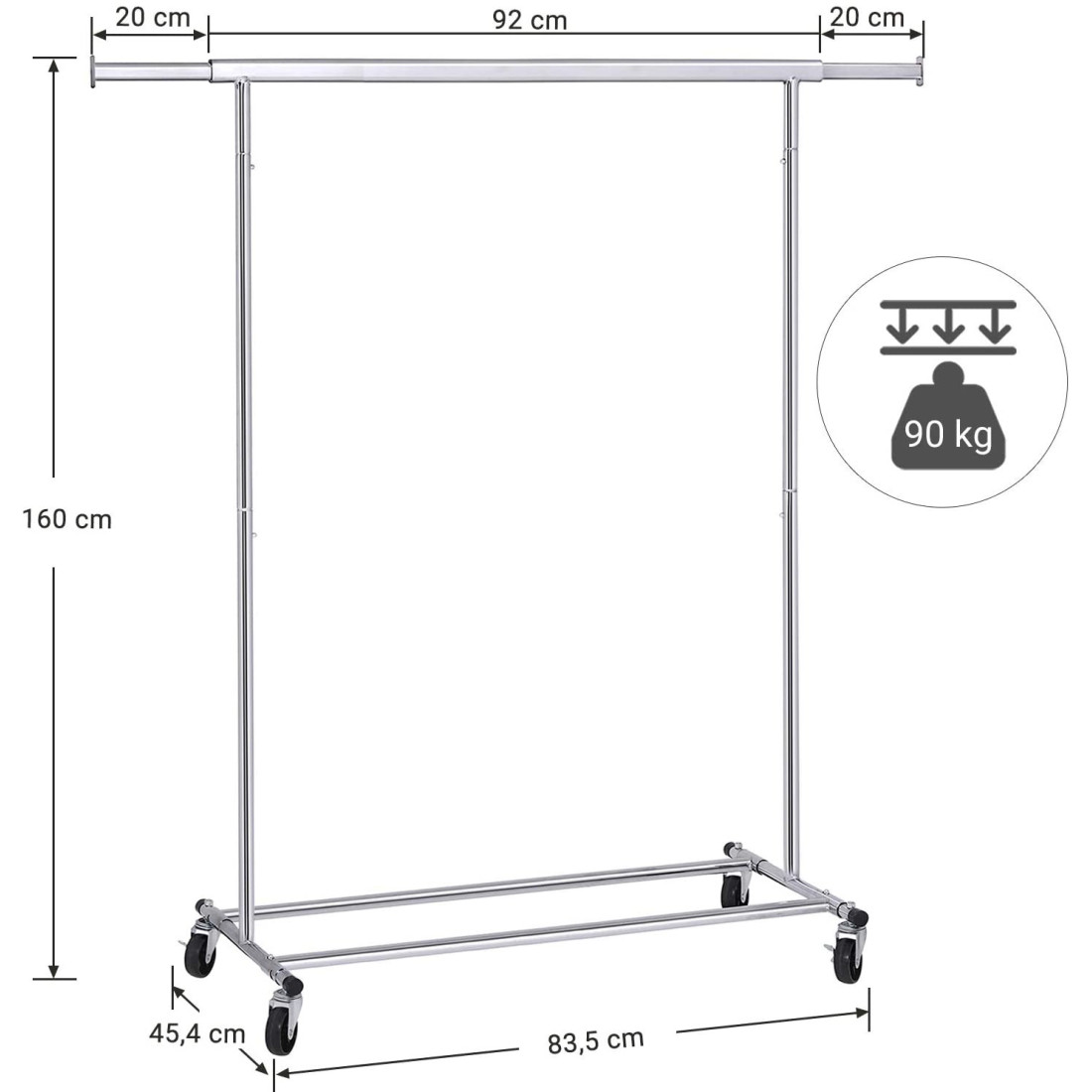 Suport mobil cu 1 bara Chrome 1, (92-132) x 45.4 x 160 cm
