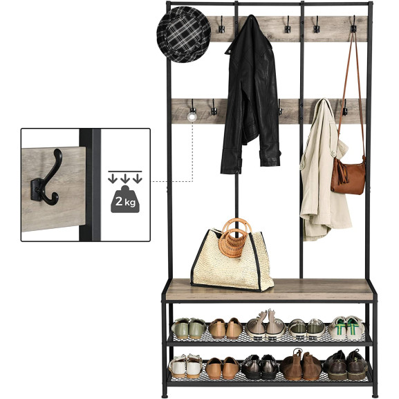 Suport Pentru Haine Cu Banca Pentru Pantofi, Negru Si Gri, 100 Cm