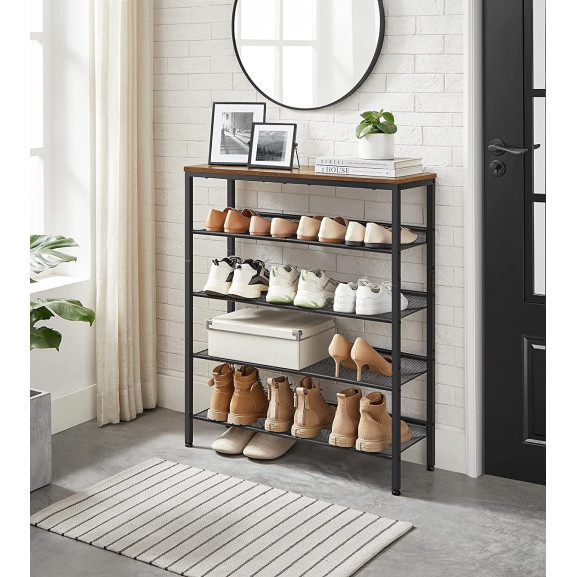 Suport Pentru Pantofi Cu 5 Niveluri, Cu Rafturi Reglabile, Maro Vintage Si Negru, 75 Cm