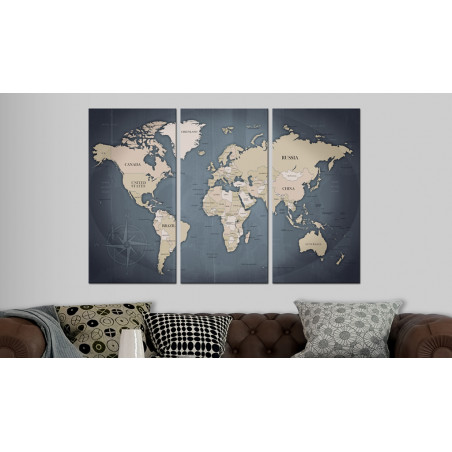 Tabloul din plută "Anthracitic World [Cork Map]" este un produs destinat celor care caută decorațiuni originale pentru pereți. Datorită materialului ecologic și designului interesant "Anthracitic World [Cork Map]" un panou din plută obișnuit se poate transforma într-o decorațiune elegantă, care poate fi folosită într-o varietate de moduri. Cu ajutorul pionezelor puteți fixa pe mapă poze, notițe, marca locurile vizitate. Tabloul din plută "Anthracitic World [Cork Map]" este cu mult mai ușor decât decorațiunile tradiționale pentru pereți. Datorită acestui fapt panourile decorative din plută pot fi amplasate în orice loc din locuința dumneavoastră sau din birou. Pânza imprimată se aplică pe panoul din plută. Se caracterizează prin culori intense și reflectă chiar și cele mai mici detalii. Fixați pioneze sau notițe și creați pe perete un design personalizat! Harta din plută este o idee de cadou perfectă pentru iubitorii de călătorii!