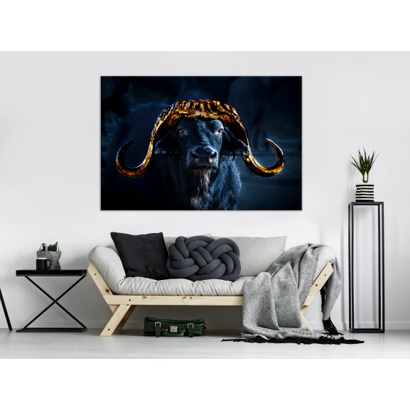 Permiteți tabloului canvas "Tablou - Golden Horns (1 Part) Wide" să vă schimbe casa și casele celor dragi!