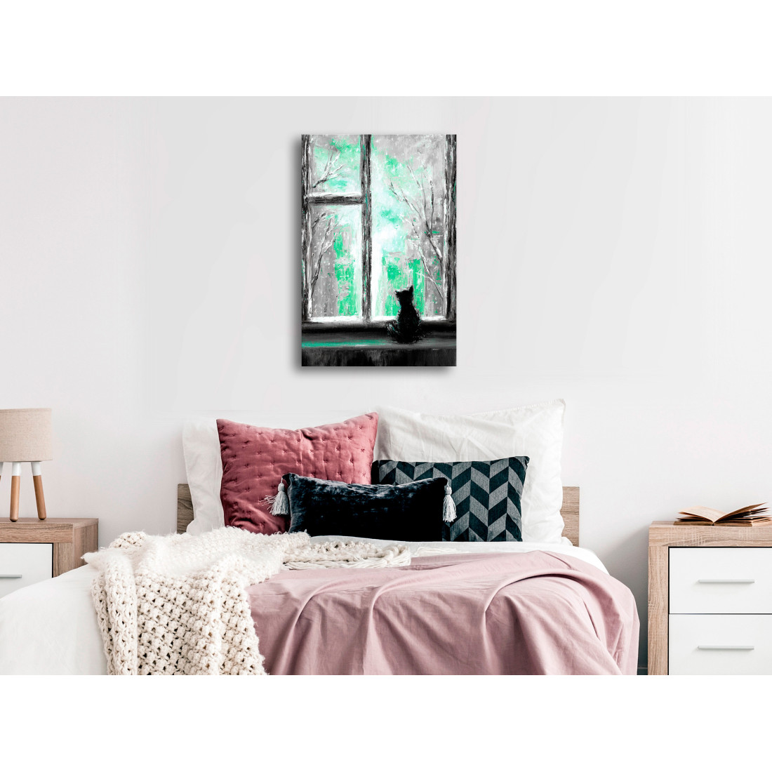 Permiteți tabloului canvas "Longing Kitty (1 Part) Vertical Green" să vă schimbe casa și casele celor dragi!