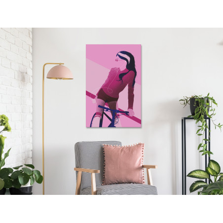 Permiteți tabloului canvas "Tablou - Woman on Bicycle (1 Part) Vertical" să vă schimbe casa și casele celor dragi!