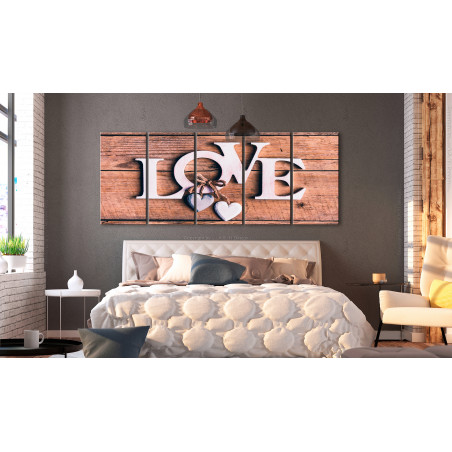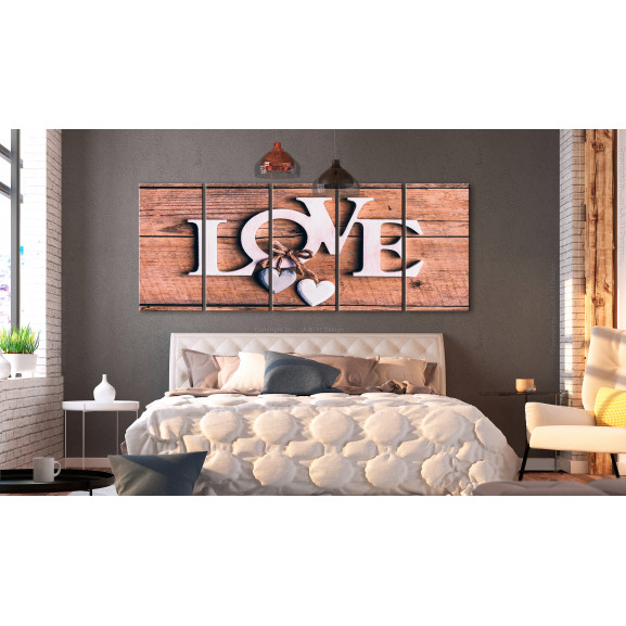 Permiteți tabloului canvas "Wooden Letters (5 Parts) Narrow" să vă schimbe casa și casele celor dragi!