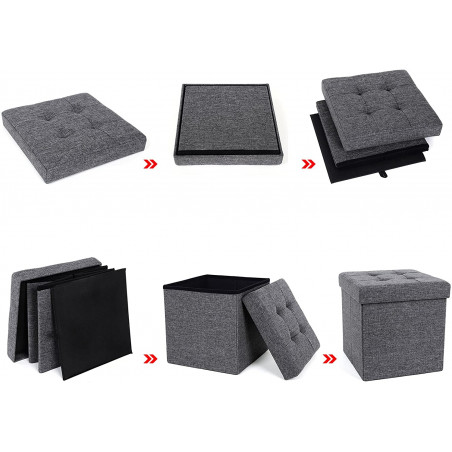 Taburet Pliabil Tamara, Cu Lada, Gri Inchis, 38 x 38 x 38 cm