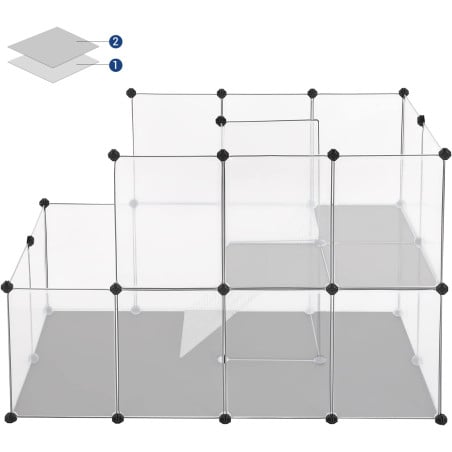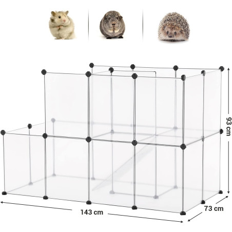 1 carcasă de nivel și jumătate vine cu o rampă cu o distanță între grilă de 1.3 cm, perfectă pentru animale mici precum cobai sau hamsteri; adăugați un tunel, un iglu, un pod sau o grămadă de fân, făcând din acest incintă un paradis familiar pentru acești mici prieteni blanosi.
