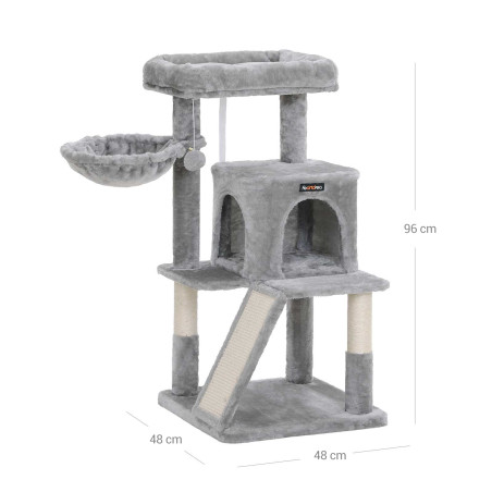 Turn De Joaca Pentru Pisici Gri, Plus Si Sisal, 48 X 48 X 96 Cm