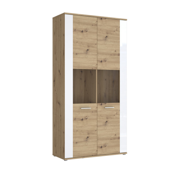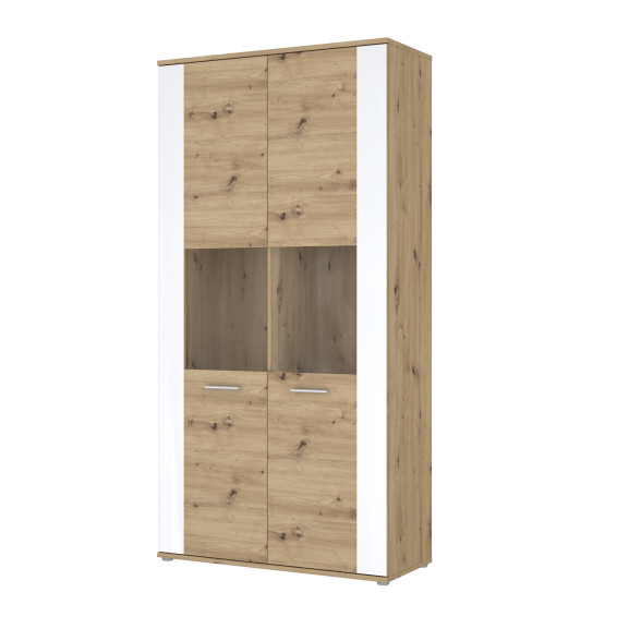 Vitrina 2 Usi Hitstone, Stejar Artisan Si Alb Super Lucios, 99.9 Cm-01