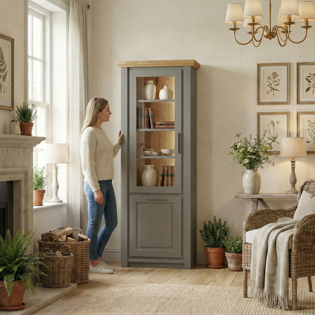 Disponibilă în variante cu deschidere pe stânga sau pe dreapta, vitrina se integrează perfect în orice configurație a camerei.