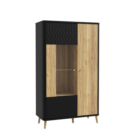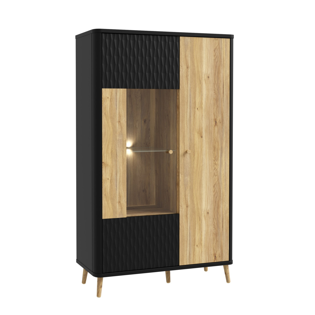 Vitrina Cu 2 Usi Flexytone, Stejar Mauvella Si Negru Mat, 93.3 Cm-01