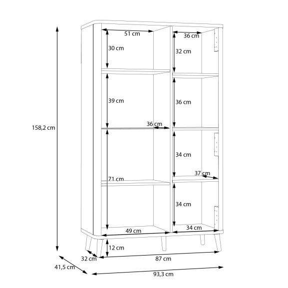 Cu două compartimente spațioase, vitrina oferă suficient loc pentru a expune obiecte de preț, colecții sau alte elemente decorative. Interiorul său bine organizat și designul compact fac din această vitrină o adiție perfectă pentru living, dormitor sau birou.