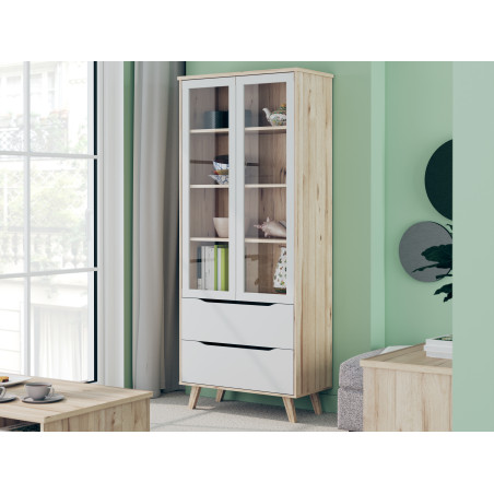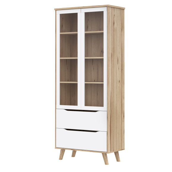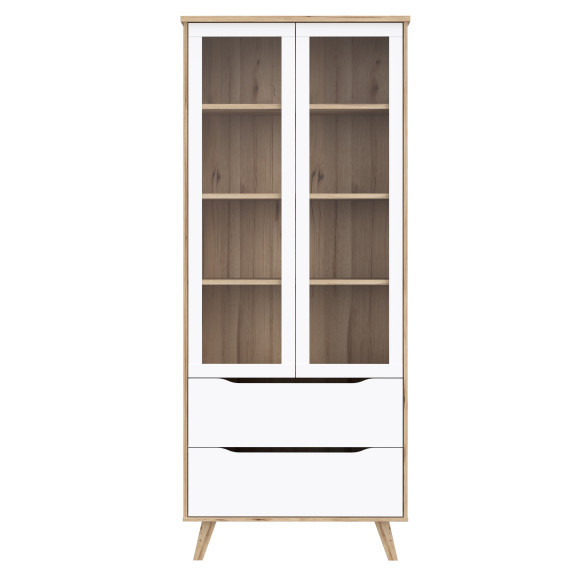 Vitrina Cu 2 Usi Si 2 Sertare Vankka, Stejar Pardosit Si Alb, 84.7 Cm