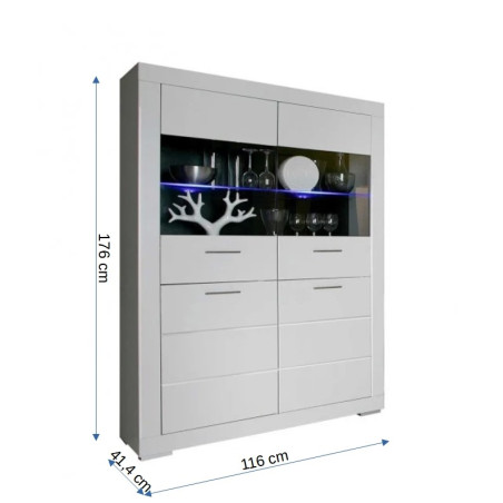 Vitrina Cu 4 Usi Snow Alb Mat, 116 Cm-01