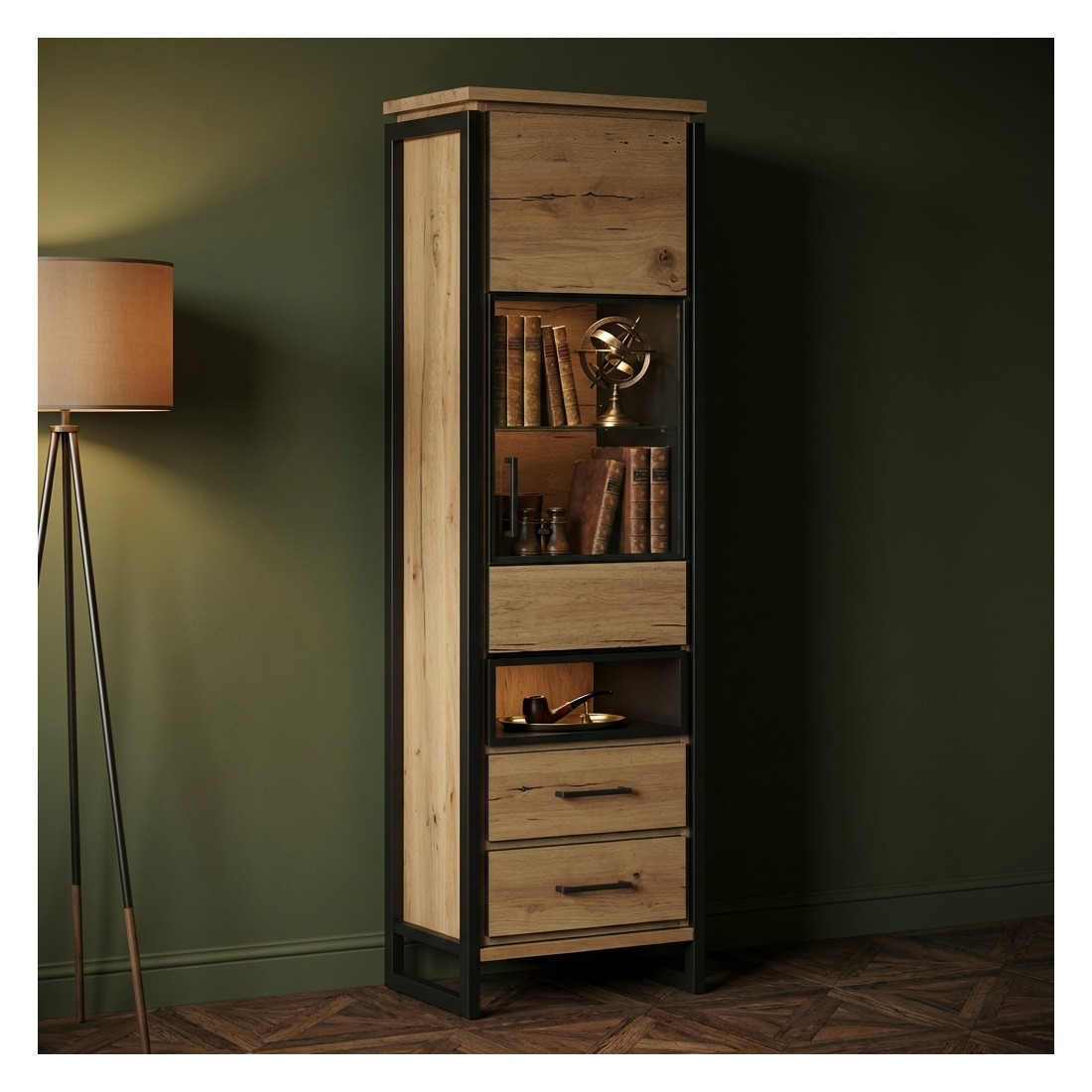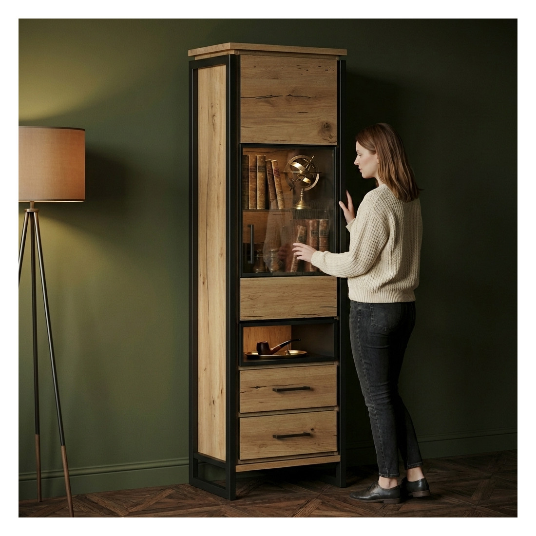 Vitrina Reno cu 1 Ușă și 2 Sertare este adiția perfectă la orice spațiu de locuit sau colecție prețioasă. Cu această vitrină, veți putea păstra și expune obiectele dumneavoastră într-un mod sigur și elegant.