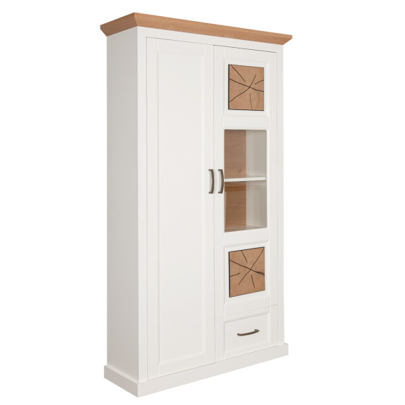 Vitrina Gomera Cu 2 Usi Si 1 Sertar, Alb Si Natur, 107.3 Cm
