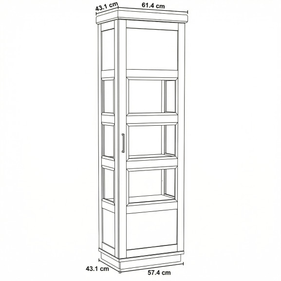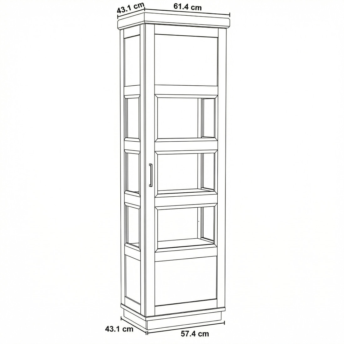 Adaugă eleganță și luminozitate livingului tău cu Vitrina Îngustă Alpina, o piesă de mobilier care transformă orice colț al camerei într-un punct de atracție. Datorită lățimii de doar 65 cm, se integrează perfect chiar și în spațiile mai restrânse, oferind însă un impact vizual major datorită înălțimii de 2 metri.