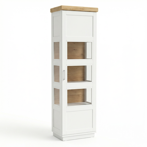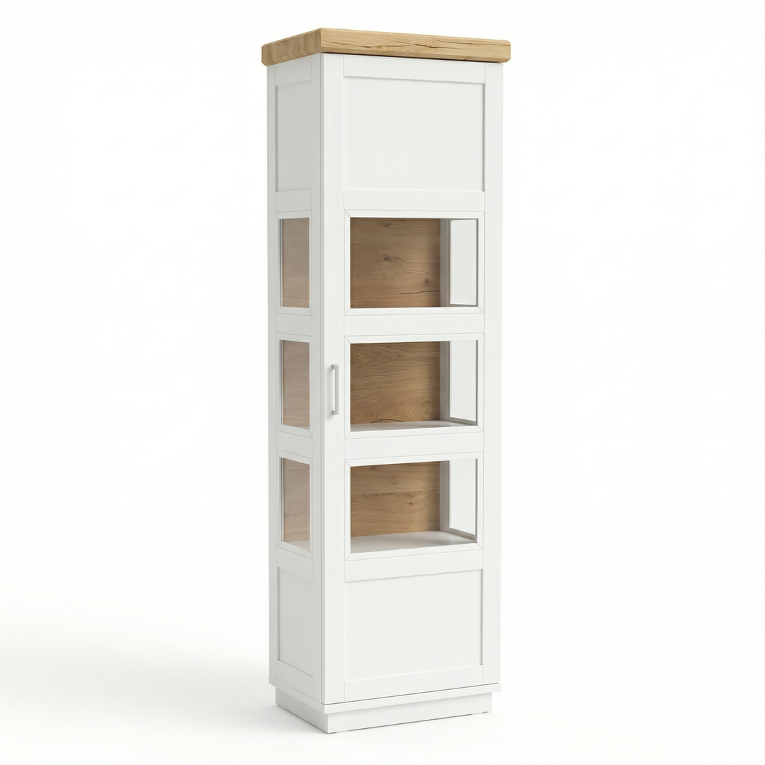 Vitrina Ingusta Alpina Cu 1 Usa, Vopsit Alb, Furniruit, Alb Si Natur, 65 Cm