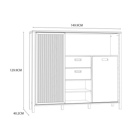 Material: Pal, maner negru din plastic, front cu lamele decorative negre