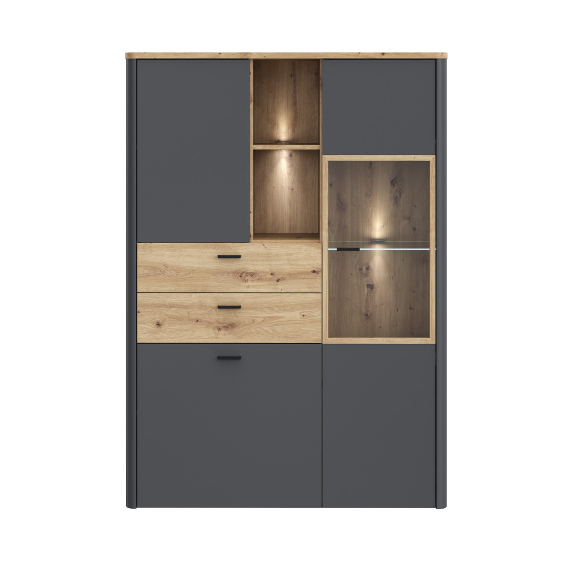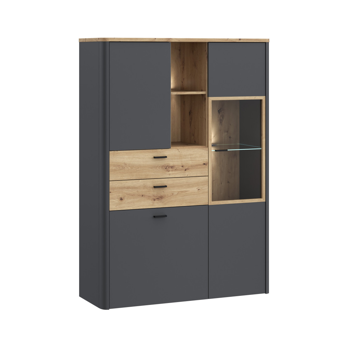 Vitrina Leokadia, Stejar Artisan Si Gri Wolfram Uni, 113 Cm-01