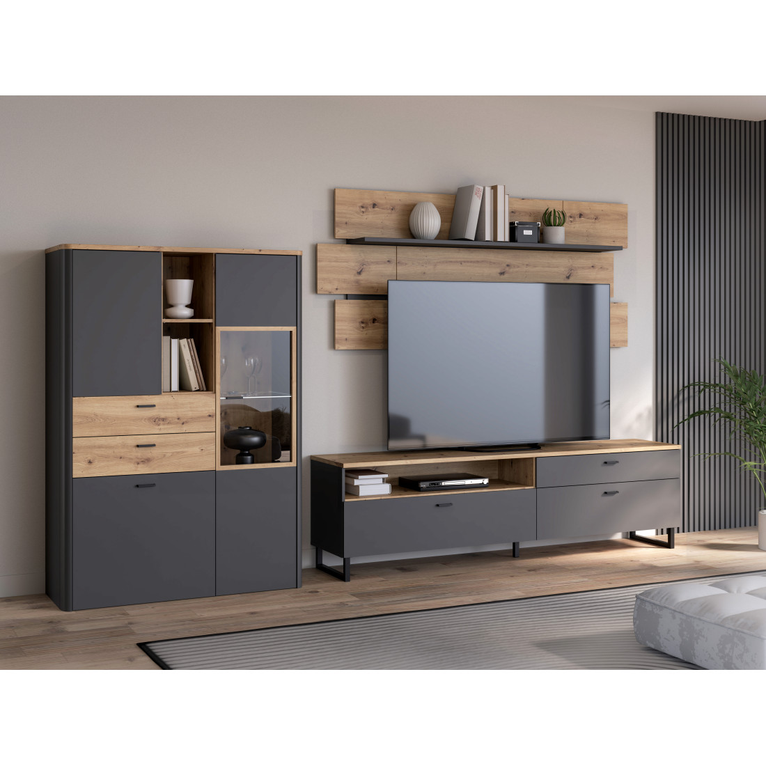 Culoare: Stejar Artisan si Gri Wolfram Uni