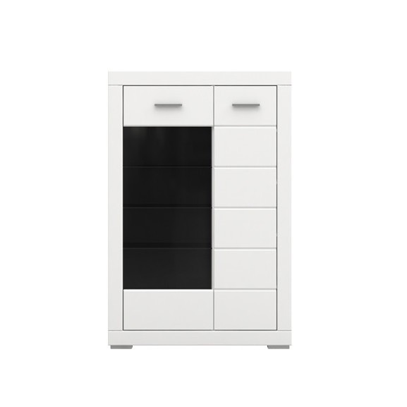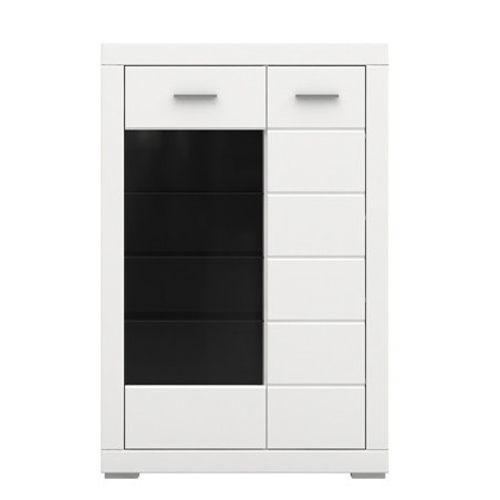 Vitrina este o piesa de mobilier foarte complexa, poate servi drept spatiu suplimentar de depozitare si piesa decorativa (spatiu pe care pot fi expuse plante, fotografii, lumanari, etc.) in acelasi timp. Vitrina Snow este realizat din placi aglomerate din lemn, cu front MDF si folie PVC.