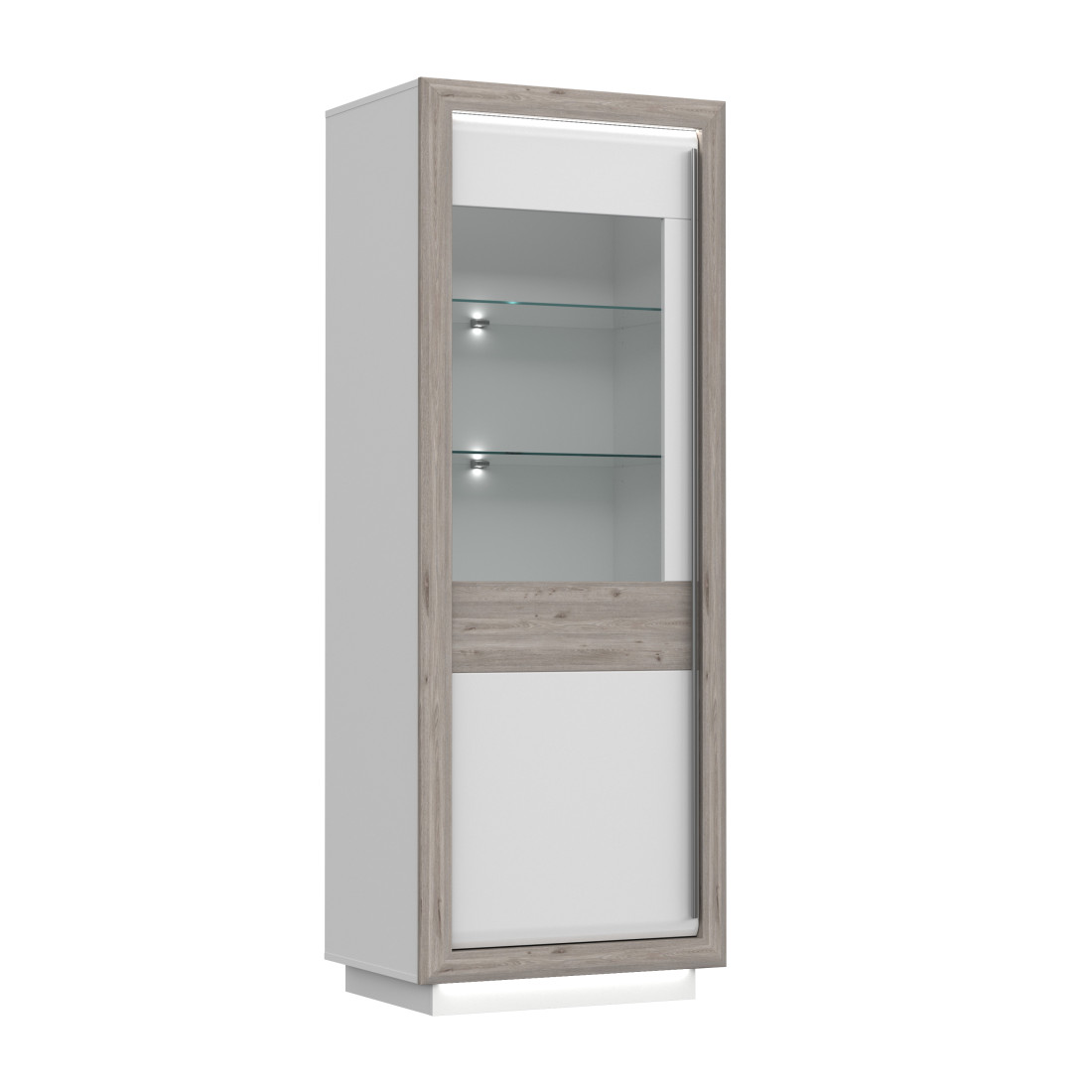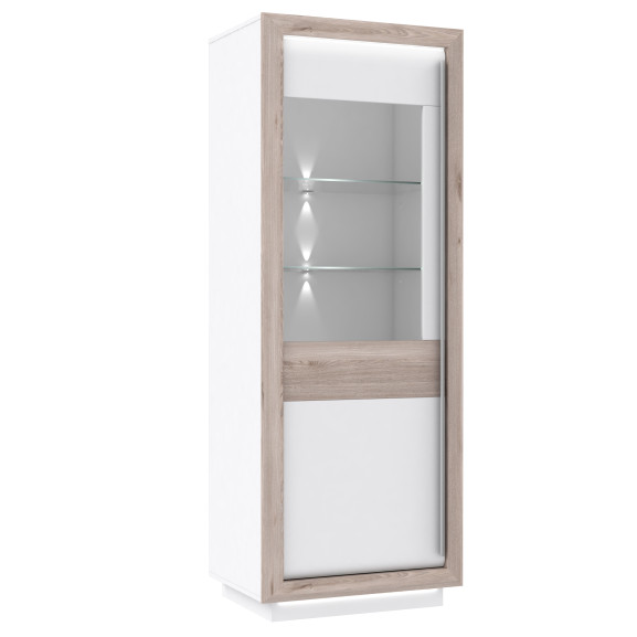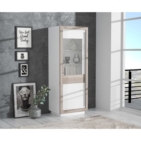 Vitrina Stanga Cuantico Stejar Nelson, Alb Si Alb Super Lucios, 73.3 Cm